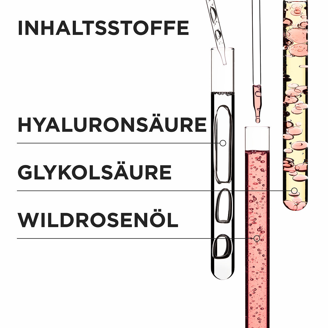 Sie ist mit Hyaluronsäure, Glykolsäure und Wildrosenöl formuliert, um das Haar tiefenwirksam zu pflegen und ihm traumhaften, schwungvollen Glanz zu verleihen.